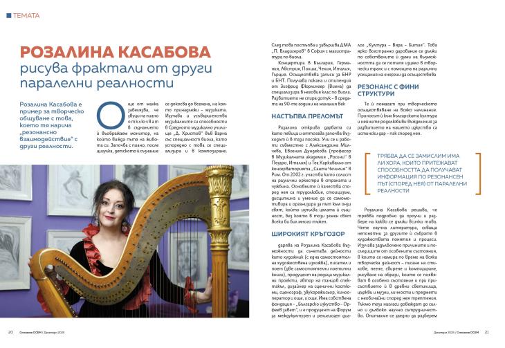- РОЗАЛИНА КАСАБОВА рисува фрактали от други паралелни реалности. Розалина Касабова е пример за творческо общуване с това, което тя нарича „резонансно взаимодействие“ с други реалности.