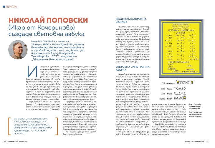 - НИКОЛАЙ ПОПОВСКИ (ИКАР ОТ КОЧЕРИНОВО) СЪЗДАДЕ СВЕТОВНА АЗБУКА. Николай Поповски е роден на 29 март 1960 г. в село Дренково, област Благоевград. Началното си образование получава в родното село, след което учи в прогимназия в град Кочериново. Там завършва и СПТУ, специалност „Двигатели с вътрешно горене“.