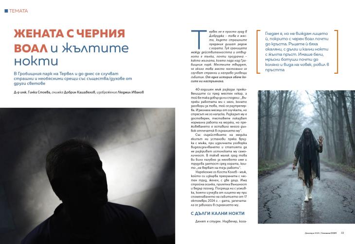 - ЖЕНАТА С ЧЕРНИЯ ВОАЛ И ЖЪЛТИТЕ НОКТИ. В Гробищния парк на Тервел и до днес се случват страшни и необясними срещи със същества/духове от други светове.