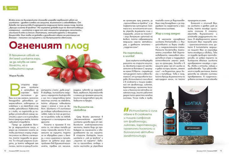 Мария РусеваВсяка есен по българските склонове изгрява червеният цвят на шипката – древен символ на защита, жизненост и обновяване. От векове тя присъства в народната медицина като огнен плод, който „връща силата в кръвта“. Но науката добавя още по-впечатляващо измерение – шипката е една от най-мощните природни лечителки, скътала в себе си кесия с витамини, антиоксиданти и безценни вещества. Към това се добавя и духовният образ на растение на Венера – пазител на сърцето и на вътрешната светлина.
