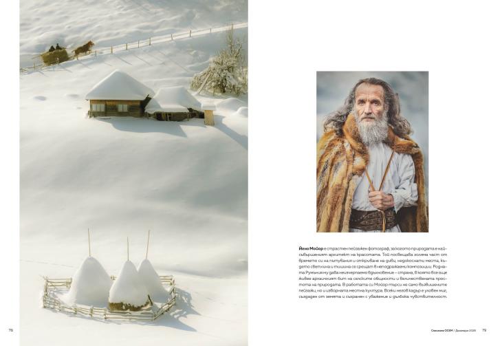 Йено Мойор е страстен пейзажен фотограф, за когото природата е най-съвършеният архитект на красотата. Той посвещава голяма част от времето си на пътувания и откриване на диви, недокоснати места, където светлина и тишина се срещат в неподражаеми композиции. Родната Румъния му дава неизчерпаемо вдъхновение – страна, в която все още живее архаичният бит на селските общности и величествената простота на природата. В работата си Мойор търси не само възвишените пейзажи, но и изворната местна култура. Всеки негов кадър е уловен миг, създаден от земята и съхранен с уважение и дълбока чувствителност.