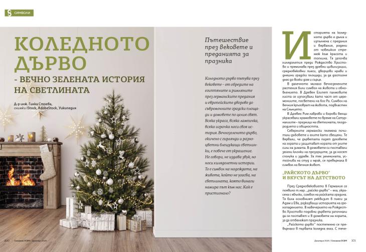 Д-р инж. Гинка СтоеваКоледното дърво пътува през вековете – от обредите на египтяните и римляните през германските предания и европейските дворове до съвременните градски площади и домовете по целия свят. Всяка украса, всяка лампичка, всяка играчка носи своя история. Вечнозеленото дърво, окичено с гирлянди и разноцветни блещукащи светлинки, е повече от украшение. Не говори, не издава звук, но носи хилядолетни истории. То е символ на надеждата, на живота, който не угасва , на светлината, която винаги намира път към нас. Как е пристигнало?