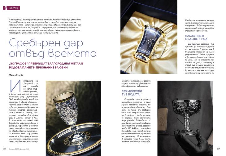 Мария РусеваИма подаръци, които радват за миг, и такива, които остават за цял живот. А около Коледа, когато домът притихва и се изпълва с топлина, търсим повече от жест – искаме да поднесем съкровище. Именно такъв съвършен дар са сребърните чаши на „Зографов“ – предмети, в които се срещат ръце на майстор, чист материал, здраве и онази творческа съзидателна сила, която превръща къс ценен метал в бъдеща семейна реликва.