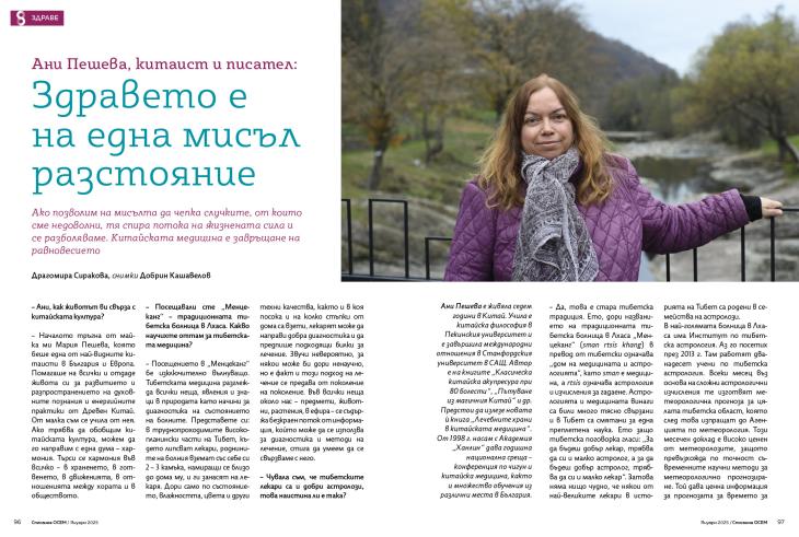 АНИ ПЕШЕВА, КИТАИСТ И ПИСАТЕЛ: ЗДРАВЕТО Е НА ЕДНА МИСЪЛ РАЗСТОЯНИЕ