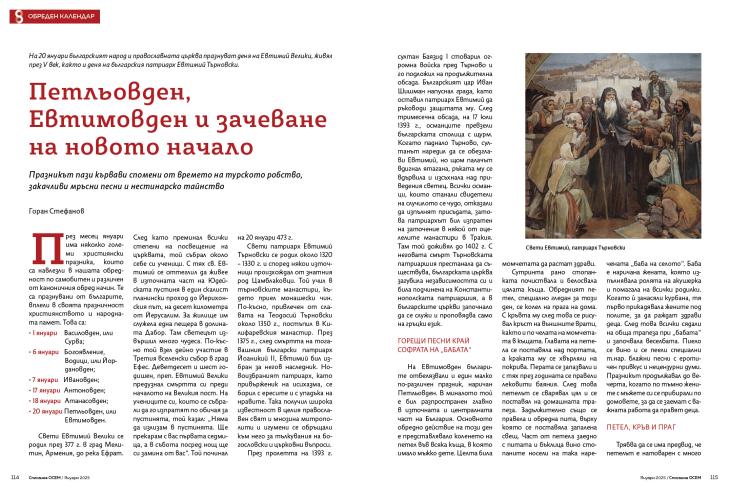 ПЕТЛЬОВДЕН, ЕВТИМОВДЕН И ЗАЧЕВАНЕ НА НОВОТО НАЧАЛО