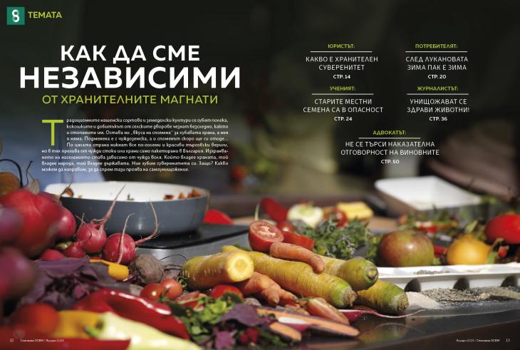 Живеем във време на смъртоносна чума. Но не е по овцете във Велинградско. Те са си добре. Раждат, пасат, преживят. А хората берат душа, там е тръгнала чумата и покосява наред. Иначе не бихме имали отговор на въпроса как е възможно да затрием oколо 100 породи домашни животни само между 2000 и 2014 година (според доклад на ФАО), както и 75% от всички известни културни растения в света. Или как корупционни схеми и лобистки практики бавно и постепенно подписват смъртната присъда на българското селско стопанство. Крайно ли ви се струва? Кога последно намерихте стари сортове семена на български зеленчук? Кога изобщо ви беше важно да сеете такива? Прочетете този брой и нека овчиците на корицата и в историите в броя сложат края на чумата на овчедушието, налегнала българина.
