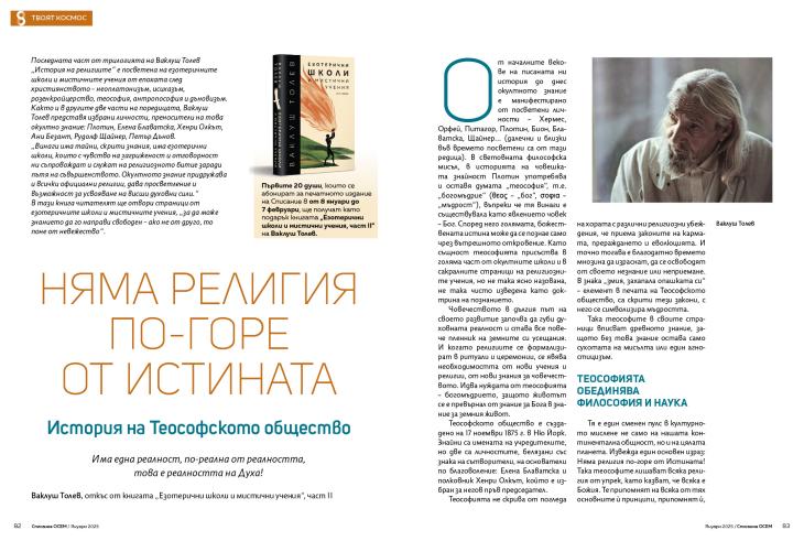 История на Теософското общество. Откъс от книгата „Езотерични школи и мистични учения“, част II на Ваклуш Толев