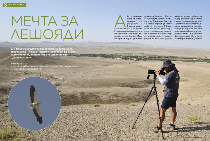 Д-р Владимир Добрев посвещава живота си на опазването на тези магнетични птици. Крилете на мечтите му го понасят от Родопите до Централна Азия.