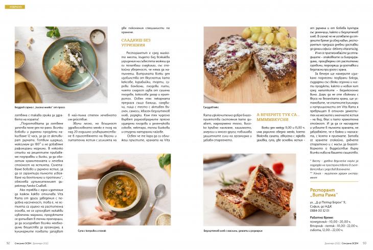 Единственият в България ресторант за здравословна растителна храна – Vita Rama, посреща съмишленици на ул. „Д-р Петър Берон“ 9 в столицата