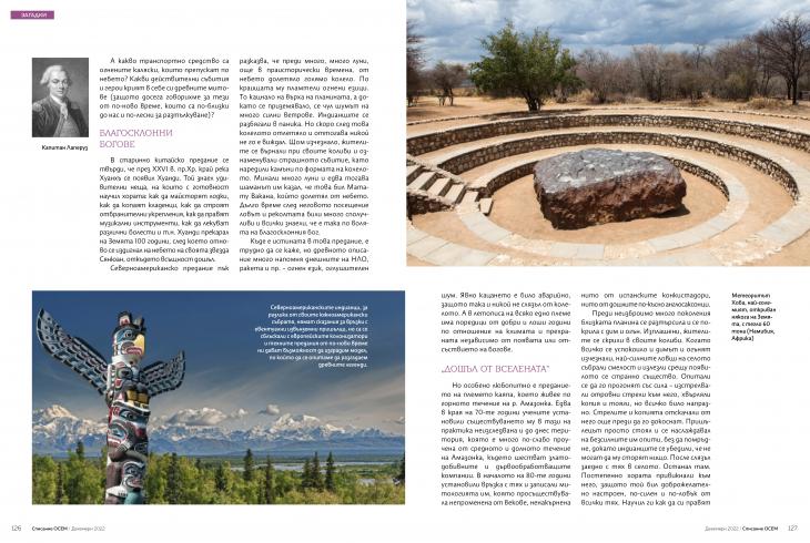 Още в броя: Прочетете разказа Крем карамелът от Рогосел на Христо Петров. Направете умствена гимнастика с нашия тест и вижте каква е подредбата на небесните тела в астрономическия ни и астрологически календари.