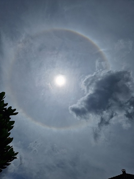 Никога няма да забравя как един ден по пладне Теджас се усмихма и ни извика. „Елате да видите слънцето!“ Затичахме се с Ика и не можехме да повярваме – дъга?! Дъга около слънцето. Този ефект, познат на учените като хало, се случва изключително рядко и повечето хора не успяват да го видят нито веднъж през целия си живот. Дъгата е чудесен символ в будизма, защото се свързва с просветлението. Големи будистки майстори, когато решат да се освободят от тялото си, го преобразуват в дъга. Това се практикува до ден днешен. Бяхме толкова щастливи! Първо – дъга около луната, а сега и около слънцето! Спомням си разказите на приятели, че по време на един от ретритите в Огняново, на който ние не бяхме, гуру Йоги Тан решил да пропусне най-важната част от учението (инициацията), защото учениците не били дисциплинирани. Казал си все пак – ще го направя, ако получа знак. Така и станало. След малко се чува глъч, викат Йоги Тан на двора и що да видят? Слънце с дъга хало.