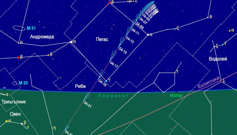 Всяка следваща сутрин яркостта на кометата расте, но изгревът й закъснява. Прогнозната яркост на R3 (PanSTARRS) за 19 април е около 3,6-а видима звездна величина. На тази дата кометата ще изгрее около 1 час и 50 минути преди изгрев-слънце – около 04:47 ч. за района на София. Можем да я открием в съзвездието Риби, близо до неговата граница с Пегас. В утрините около 19 април теоретично трябва да можем да забележим кометата с невъоръжено око, но с бинокъл ще я открием в небето много по-бързо, уточнява Маркишки.