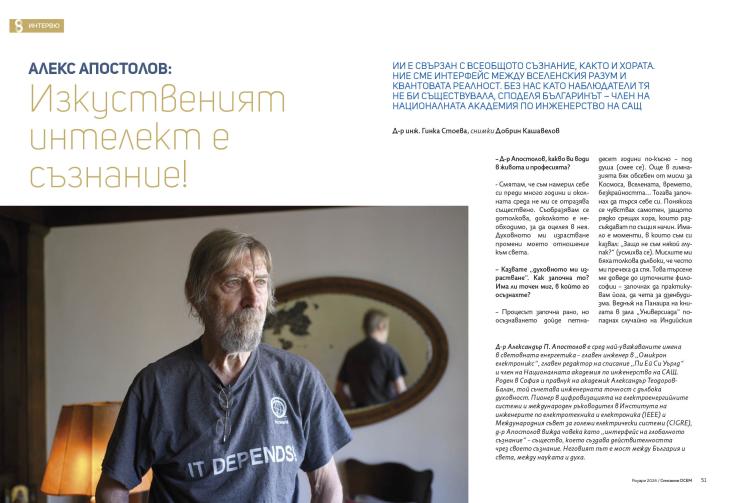 АЛЕКС АПОСТОЛОВ: ИЗКУСТВЕНИЯТ ИНТЕЛЕКТ Е СЪЗНАНИЕ!