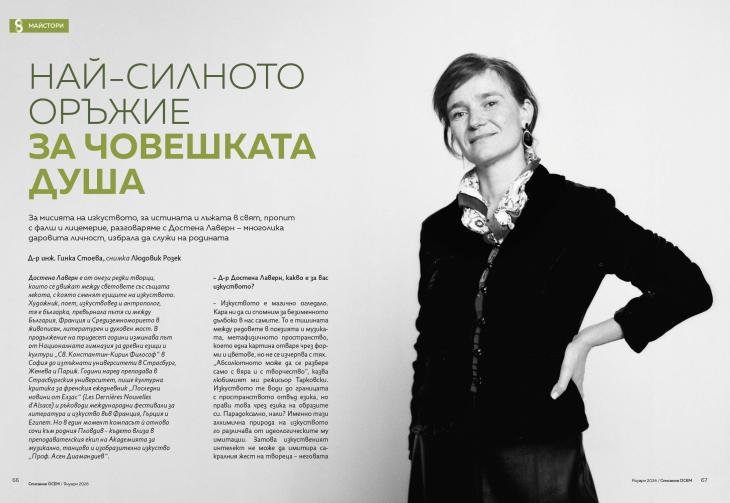 За мисията на изкуството, за истината и лъжата в свят, пропит с фалш и лицемерие, разговаряме с Достена Лаверн – многолика даровита личност, избрала да служи на родината