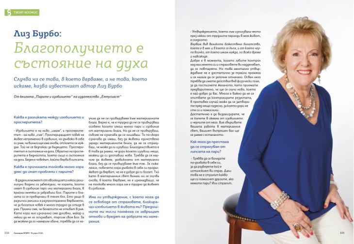 ЛИЗ БУРБО: БЛАГОПОЛУЧИЕТО Е СЪСТОЯНИЕ НА ДУХА