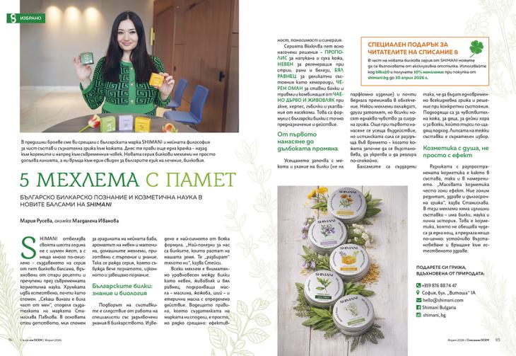 В предишни броеве сме ви срещали с българската марка SHIMANI и нейната философия за чист състав и съзнателна грижа към кожата. Днес тя прави още една крачка – назад към корените и напред към съвременния човек. Новата серия билкови мехлеми не просто допълва линията, а ни връща към един свиден за българите език на лечение, билковия.