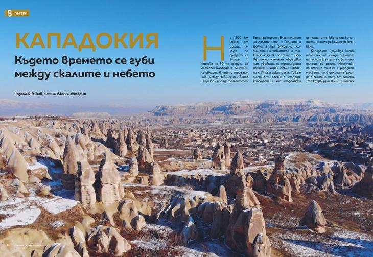 На 1300 км южно от София, някъде по средата на Турция, в припека на 30-те градуса, се мержелее Кападокия – мистична област, в чийто триъгълник – между Невшехир, Аванос и Юргюп – попадате в естествения декор от „Властелинът на пръстените“ с Горната и Долната земя (буквално), жилищата на хобитите и т.н. Отвсякъде ви обгръщат всевъзможни каменни образувания, убежища на триглодити (пещерни хора), скали, напоени с вяра и аскетизъм. Това е местност, осеяна с история, кръстосвана от търговски пътища, отъпквани от копитата на хиляди камилски кервани.