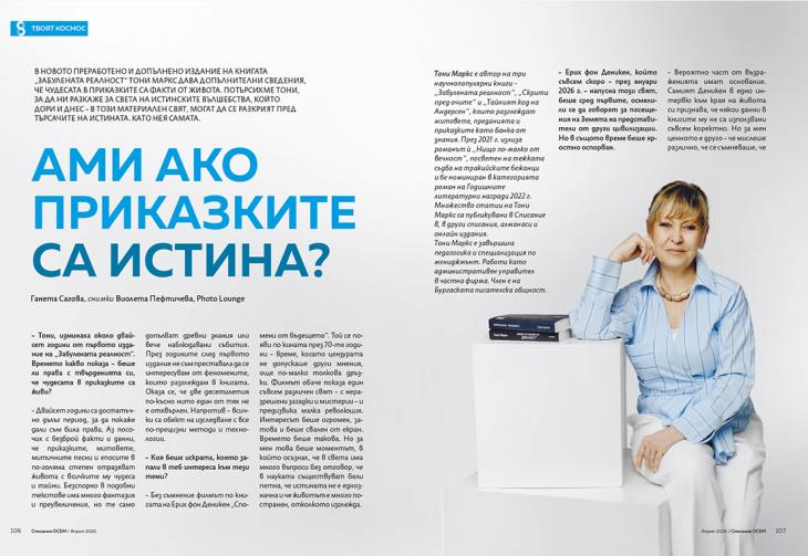 В новото преработено и допълнено издание на книгата „Забулената реалност“ Тони Маркс дава допълнителни сведения, че чудесата в приказките са факти от живота. Потърсихме Тони, за да ни разкаже за света на истинските вълшебства, който дори и днес – в този материален свят, могат да се разкрият пред търсачите на истината. Като нея самата.