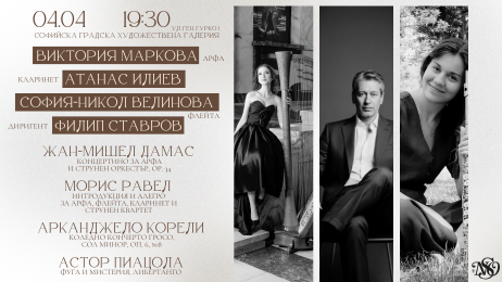 Солисти на вечерта ще бъдат София-Никол Велинова (флейта), Атанас Илиев (кларинет) и Виктория Маркова (арфа) – изпълнители с ярко присъствие на българската музикална сцена.