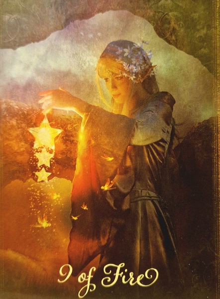 Девeтка Огън (Жезли) - вглеждане навътре, несигурност, преоценка на обстоятелствата, нужда да пуснеш старото