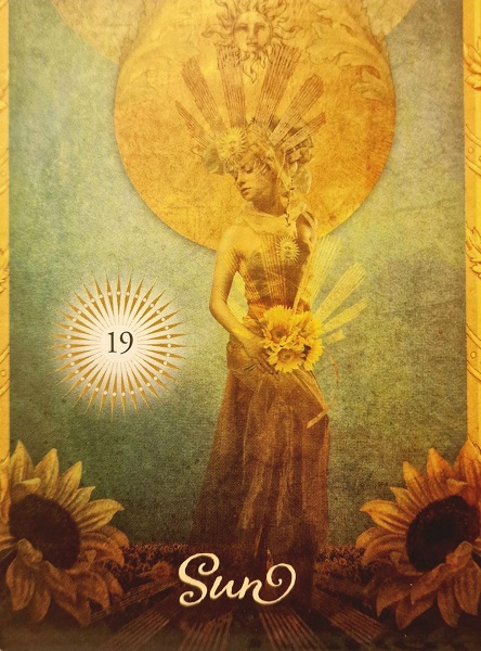 Картата на Слънцето носи оптимизъм и вяра, че в този момент всичко е възможно, свързва ни с жизнената ни енергия. Носи благоприятни възможности за осъществяване и израстване както в материален, така и в духовен план.
