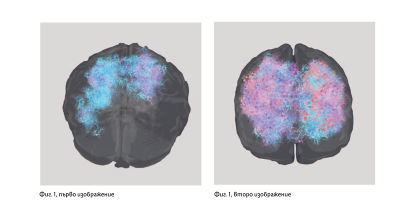 Фиг. 1, първо изображение: Мозък на изморен човек – черните области са напълно