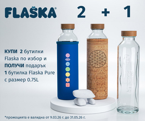 В момента марката предлага и ограничена оферта: при покупка на две бутилки получаваш Flaška Pure 0.75L като подарък - практично решение както за теб, така и за хората около теб.