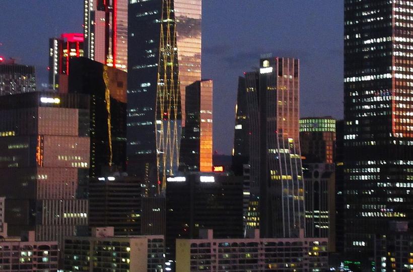 Той е не само пред очите ми, но и буквално под нозете ми, защото подът на платформата, висока половин километър, е от дебело стъкло. Взирам се в артериите на булевардите, в капилярите от време и от човешки животи. Пулсиращата нощ е тук, където само преди 70 години е било пепелище.