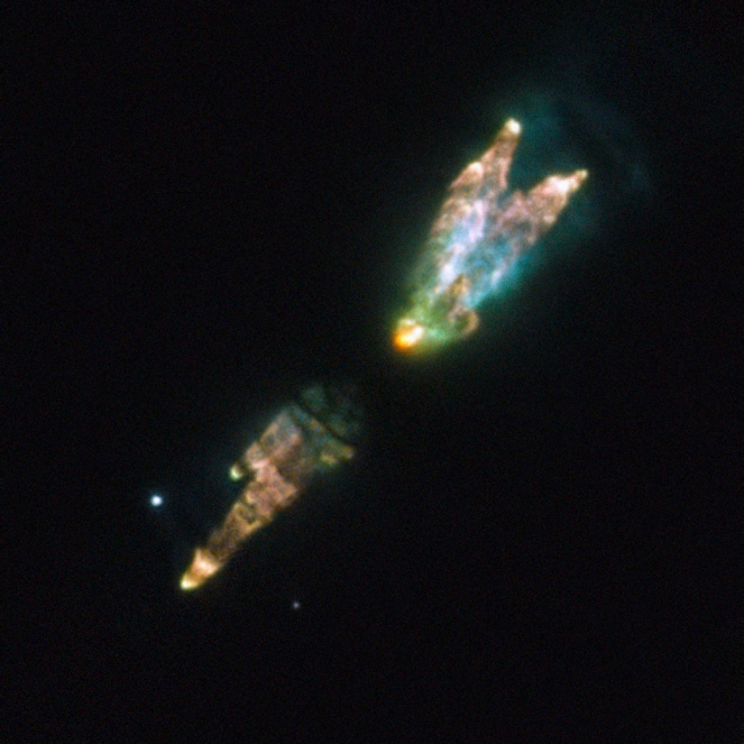 Истински цветни снимки на точките на сблъсък D и G на Юпитер